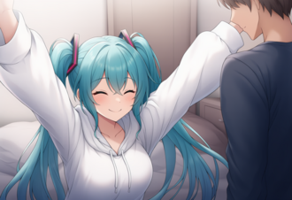 「クリスマスのリンの発言を思い返したミクは同じお願いをマスターにして...」 今週もお疲れ様です。こんばんは風音です 皆さんは麻雀を始めた際、誰かに教えてもらったりしましたか?独学だとしたら相当凄く感じます。自分は半分って感じでした 雀マスってのは雀士なマスターってことです(単純) ストーリーはマスター(あなた)とミクの二人から織りなすイチャラブ純愛系日常です。 主人公→雀士なマスターミクには甘々 ミク→マスターにツン0.5割デレデレ9.5割なボーカロイド、マスターの家に来たきっかけは... うちの子は20歳超えているのでご心配なく←絶対要らないこの注釈 1upを縛る代わりに他の能力ポイント条件は緩めです。フラグアイテムなし イラストはnovelAiによる生成物です そのせいか、同じプロンプト、およびseed値でも完全に同じ背景にならなかったりで、違和感ポイントが出てくるかもしれませんがうちのかわいいミクに免じて許してください。 (追記)背景等を合わせたりするのは完全に諦めました。可能な限り似せる様に頑張ります 主人公のセリフには「」の前にマの文字を置いています。 ウチのとこのミクの胸サイズは大きめなので貧乳過激派の方はご了承くだψ 続編を作るかは評判次第(露骨) 可能であれば各週の土曜か日曜に更新しようかなと思っています。 そしてメインタイトルの前にサブタイトルを付ける様にしました。 前→https://erojong.net/game/553 アト→https://erojong.net/game/564 page1→https://erojong.net/game/486 出会い→https://erojong.net/game/515 ミク以外のキャラ登場回→page 7 page 12 page 2? 「恋する心のしあわせを そっと教えたひとの名は せんせい せんせいーそれはせんせい」