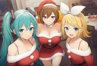 「家の用事をマスターは片付け今日はクリスマスパーティ!マスターの知らない間に3人は計画を立てており...」 好きなケーキはチーズ系。こんばんは風音です。 皆さんケーキ食べます? 雀マスってのは雀士なマスターってことです(単純) ストーリーはマスター(あなた)とミクの二人から織りなすイチャラブ純愛系日常です。 主人公→雀士なマスターミクには甘々 ミク→マスターにツン0.5割デレデレ9.5割なボーカロイド、マスターの家に来たきっかけは... うちの子は20歳超えているのでご心配なく←絶対要らないだろこの注釈 1upを縛る代わりに他の能力ポイント条件は緩めです。フラグアイテムなし イラストはnovelAiによる生成物です そのせいか、同じプロンプト、およびseed値でも完全に同じ背景にならなかったりで、違和感ポイントが出てくるかもしれませんがうちのかわいいミクに免じて許してください。 (追記)背景等を合わせたりするのは完全に諦めました。可能な限り似せる様に頑張ります 主人公のセリフには「」の前にマの文字を置いています。 ウチのとこのミクの胸サイズは大きめなので貧乳過激派の方はご了承くだψ 続編を作るかは評判次第(露骨) 可能であれば各週の土曜か日曜に更新しようかなと思っています。 そしてメインタイトルの前にサブタイトルを付ける様にしました。 前→https://erojong.net/game/550 アト→大晦日orお正月 page1→https://erojong.net/game/486 出会い→https://erojong.net/game/515 「欲しいもの教えてよ うれしいな(うれしいよ)気が合うってこと伝わるよ しあわせな気分! Yeah! Happy Christmas!!」